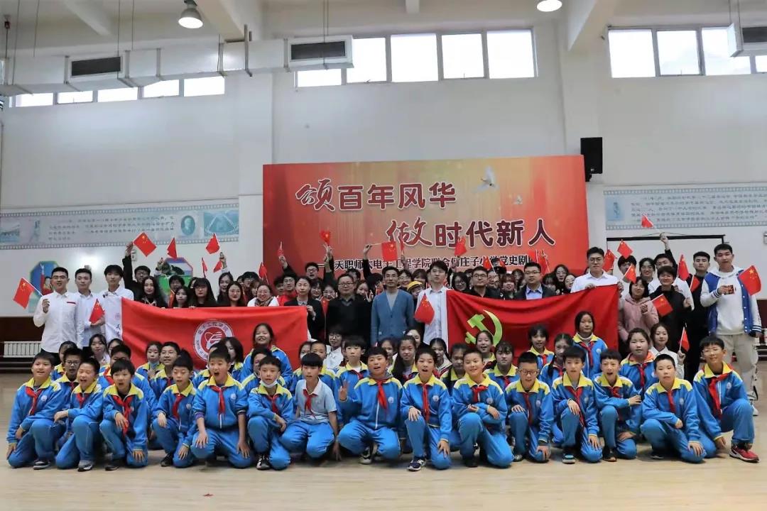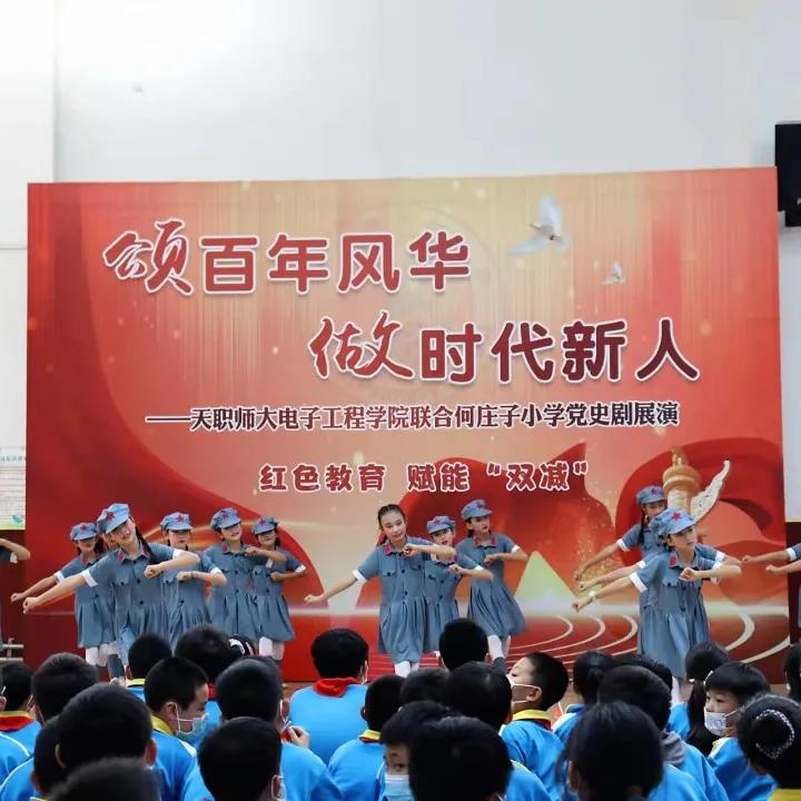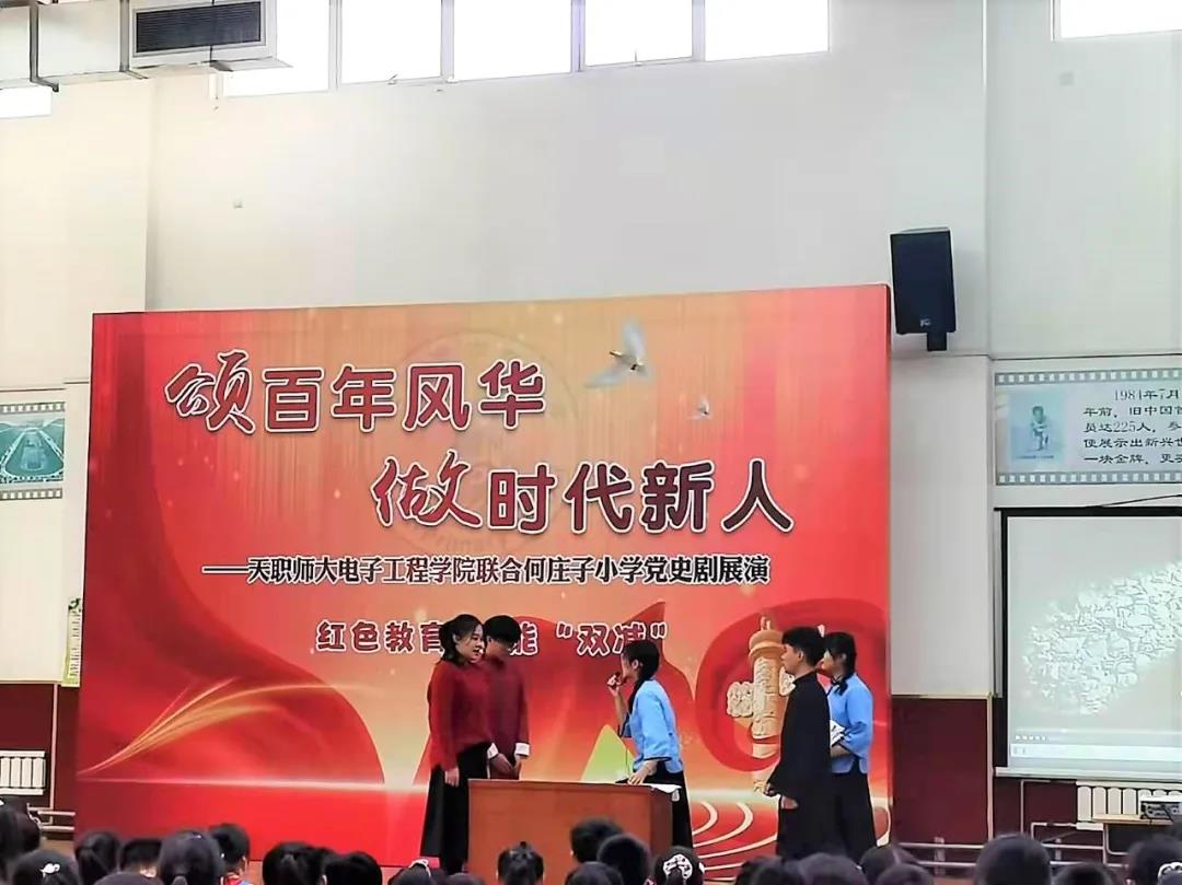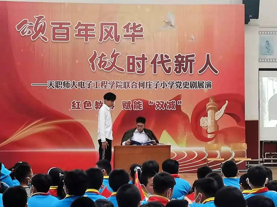 为庆祝中国共产党成立100周年,深入学习贯彻习近平总书记“七一”重要讲话精神,贯彻落实党的十九届六中全会精神,大力弘扬伟大建党精神,生动展现学院师生党史学习教育成果,在纪念“一二·九”爱国运动86周年之际,12月7日,william威廉中文联合天津市津南区何庄子联合小学在小学体育馆开展“颂百年风华 做时代新人”党史剧展演活动,院党委副书记仲伟邦、何庄子联合小学党支部书记、校长张洪志、副校长戴志娟出席,我院辅导员代表、参演人员43人参加,何庄子联合小学4个年级500余人观看。