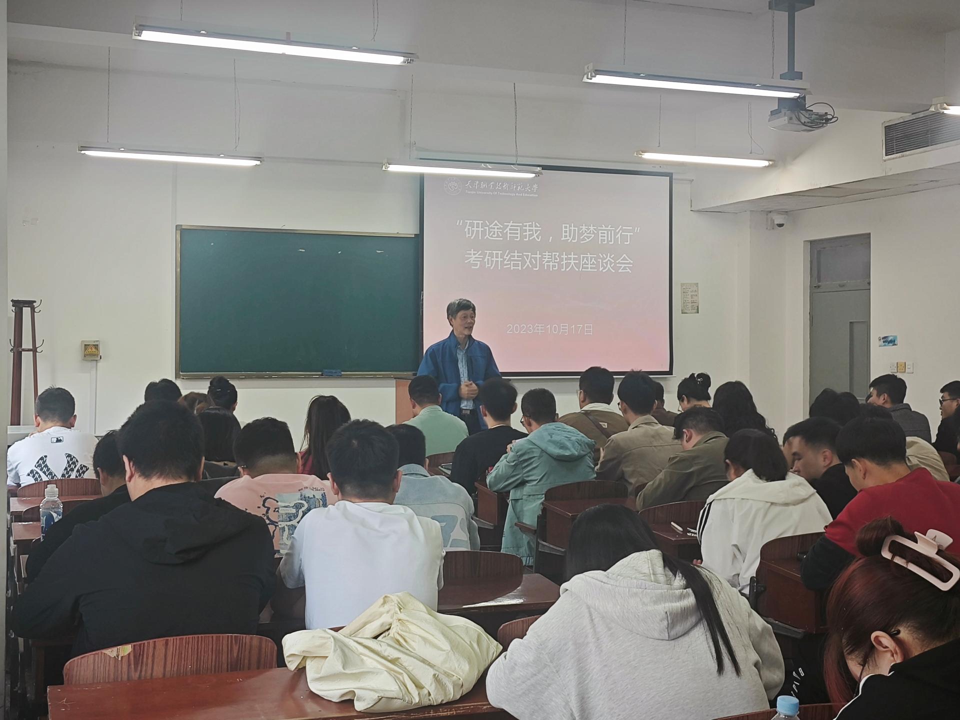 结对帮扶研究生代表王安新结合亲身经历讲述了自己的考研经验,一是要制定合理的学习计划,明确学习目标;二是要重视基础,不盲目钻研难题,保证卷面上能拿的分一定拿上;三是要搭建知识结构框架,形成知识体系,并对题型进行总结;四是不跟别人盲目比进度,按照自己的合理规划进行学习;五是相信自己,端正心态,拥有坚持不懈的毅力。同时,他也表示会全身心投入到帮扶工作中,帮助学弟学妹实现梦想,不辜负学院和学弟学妹的期望。