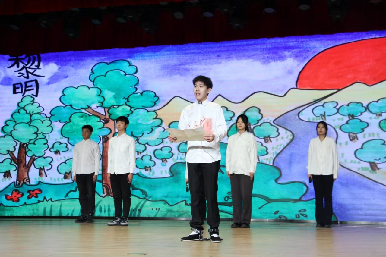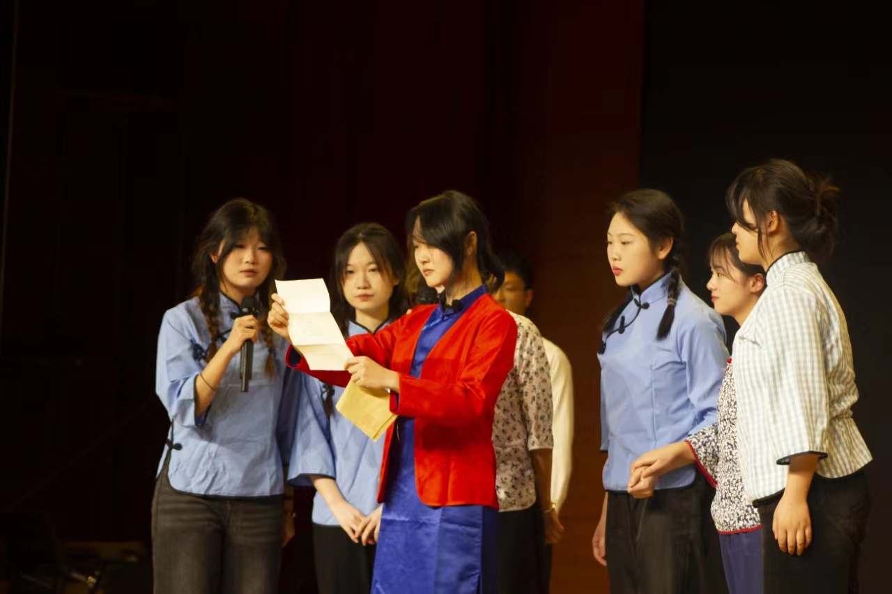 演出最后,现场师生肃然起立、高举国旗,同唱《我爱你中国》。鲜艳的五星红旗汇聚成的红色海洋,飘荡在展演厅上空的嘹亮歌声,向观众传递了师生的拳拳爱国情。