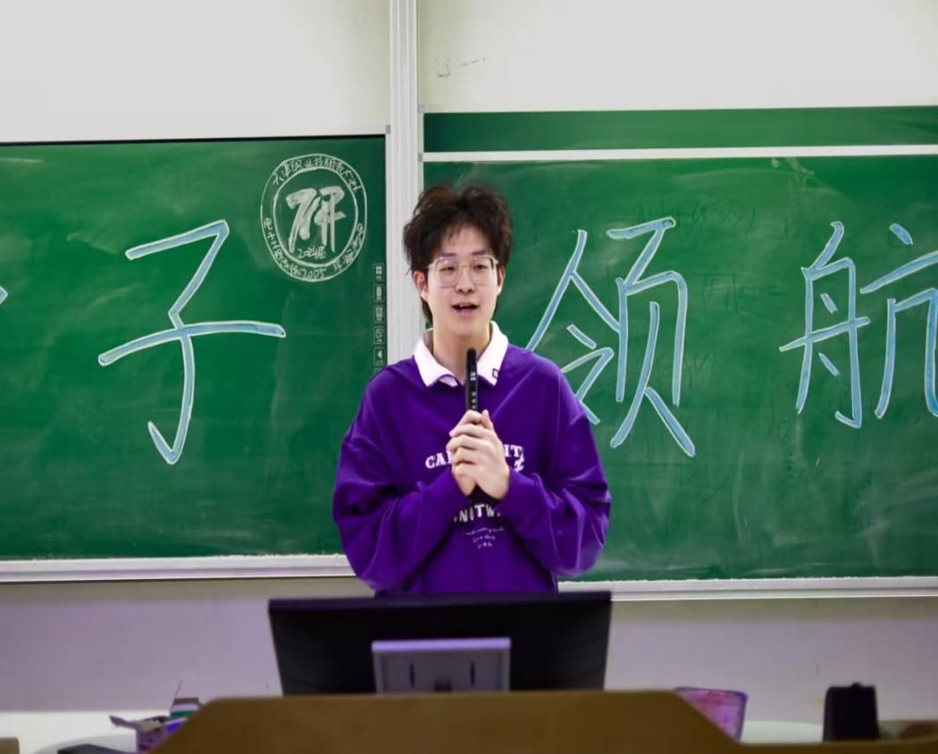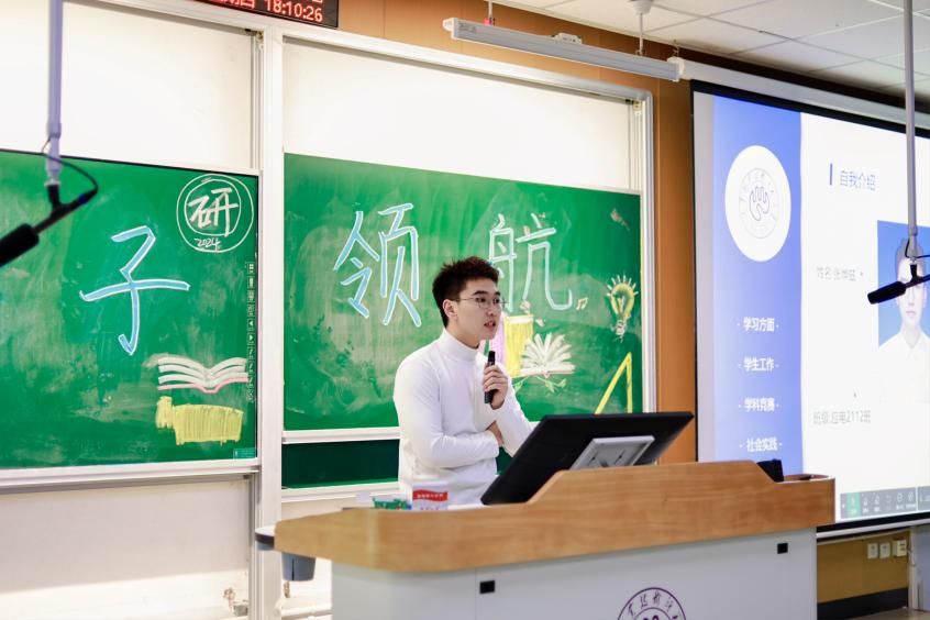 活动当晚,教室内座无虚席,气氛热烈。来自不同专业的优秀学子们逐一登台,以自身经验为例,分享了他们的大学成长经历和宝贵经验。“王克昌奖学金”获得者、应用电子技术教育专业陈沛霖以自身为例,向同学们介绍了个人获得的各个奖项,以及给全体大一学子们关于准备大学生竞赛相关的建议。