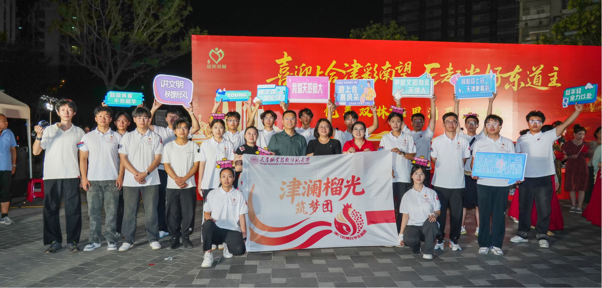 7月26日,“津澜榴光筑梦团”及其扩展的学院优秀团员与学生干部代表组成的社会实践服务团队受邀参加“迎上合 展风采 争做文明有礼天津人——悦美双林邻里消夏缤纷夜”系列活动。活动在津南区双林街理想城广场热闹举办。这支天职师大学生实践团忙碌穿梭但井然有序。团队指导教师袁林进行指导与保障工作,校团委书记衣传波作工作点评指导。