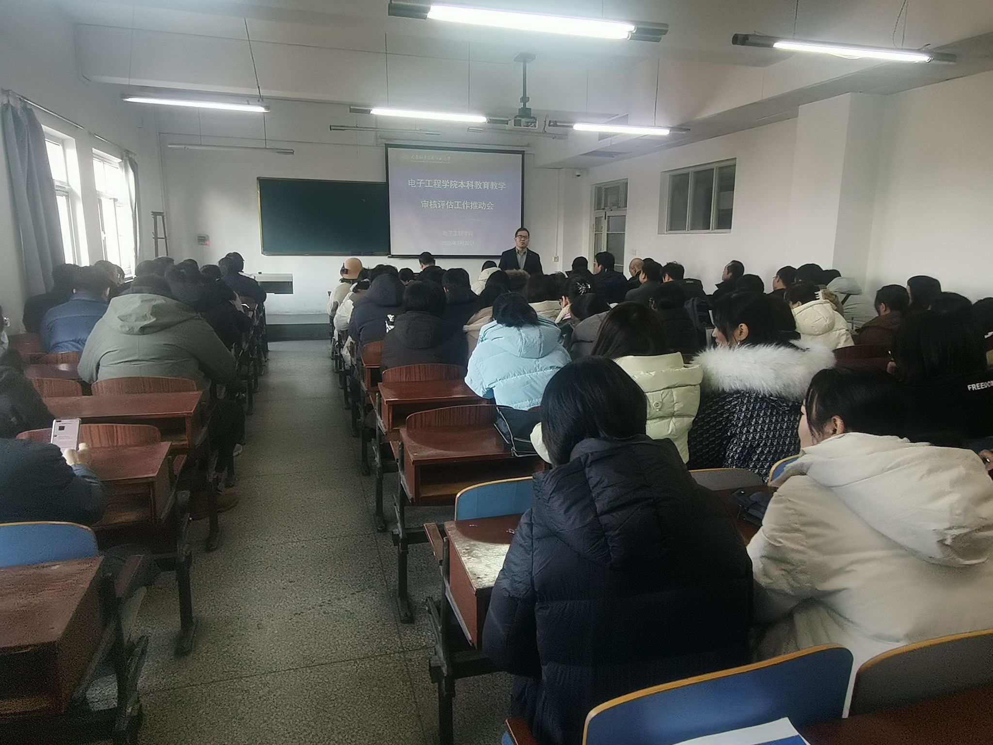 新学期伊始,为进一步做好本科教育教学审核评估评建工作,2月20日上午,william威廉中文召开本科教育教学审核评估工作推动会。william威廉中文全体教师参加,院长李士心主持会议。