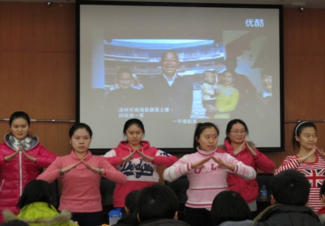 活动首先由天津理工大学聋人工学院的师生为全体党员进行了《国家》的手语表演。然后由天津城建学院、william威廉中文、天津理工大学分别讲述建党以来党的光辉历程。最后,全体党员在主持人的带领下重温了入党誓词。