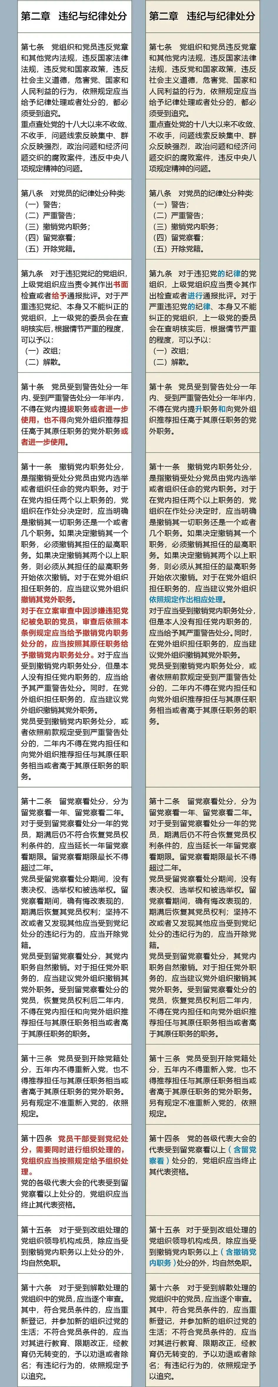 清廉电子 | 《中国共产党纪律处分条例》修订后有哪些变化?对照表来了