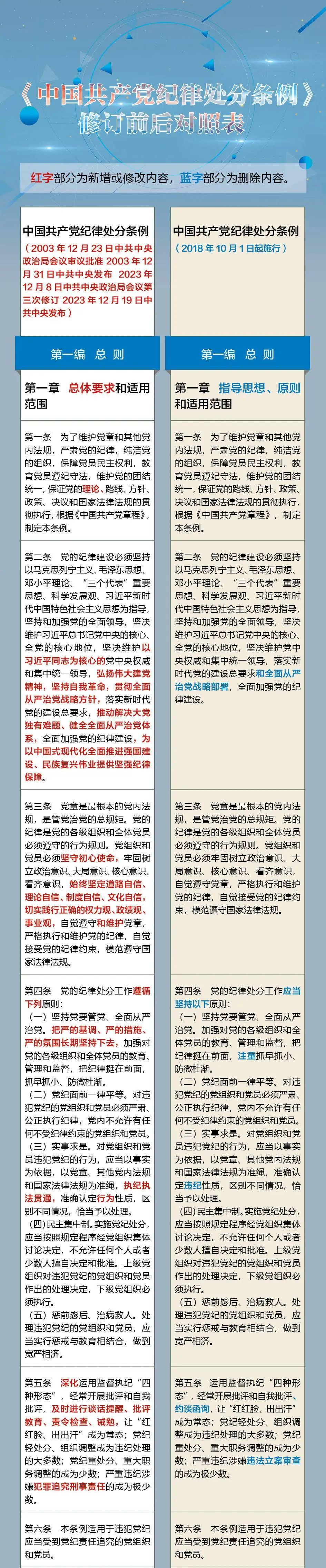 日前,新修订的《中国共产党纪律处分条例》出台,于2024年1月1日起施行。这是党的十八大以来,条例的第三次修订。
