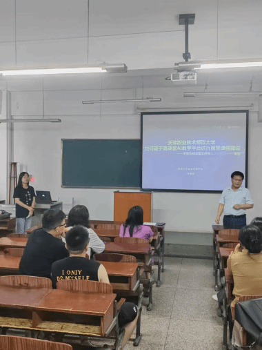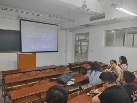 本次培训特邀清华大学学堂在线平台天津区负责人贾惠颖老师,围绕“基于雨课堂AI教学平台开展智慧课程建设及应用”这一核心主题,详细解读教育部最新政策导向。贾惠颖指出,高校利用AI技术深化教学改革、建设智慧课程是当前的重要任务和发展趋势。培训中,贾惠颖系统介绍了学堂在线的发展历程以及平台全面接入DeepSeek大模型后所带来的强大能力,重点讲解了基于该平台进行智慧课程建设的“四步建课法”,带领学院教师体验平台的核心功能,为学院教师利用雨课堂AI教学平台开展智慧课程建设、提升教学质量提供了清晰的路径和有力的工具支持。