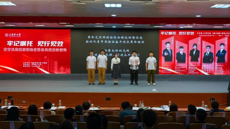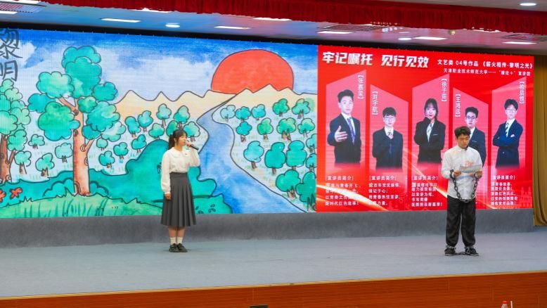2025年4月18日,由市教育两委主办的“牢记嘱托 见行见效”第三届基层理论宣讲员风采展示活动在天津理工大学图书馆报告厅圆满落幕。学院“理论+”宣讲团作品《薪火相传—黎明之光》在激烈角逐中脱颖而出,荣获文艺类二等奖。